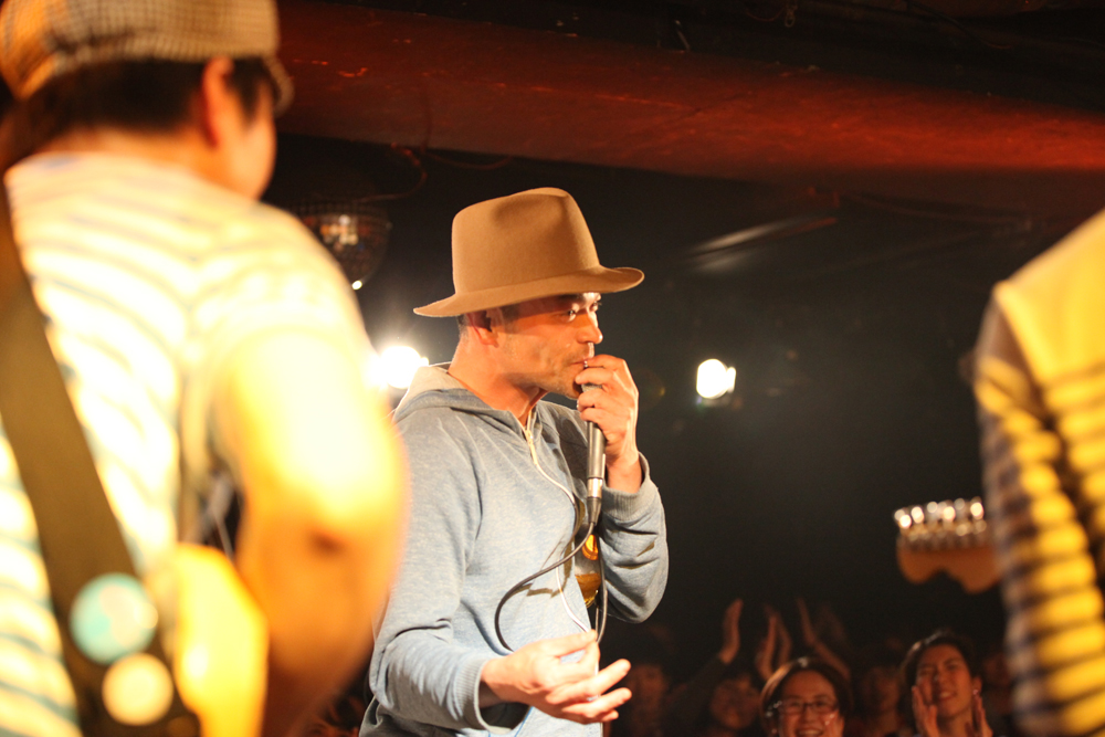 鍵盤のサポートに、たまにワンダフルボーイズの鍵盤岩井ロングセラーが参加したり、ワンダフルボーイズのドラム番長の主催するMeets The Raggaeにbonobosのボーカル蔡忠浩さんも参加したりと、もともと縁やゆかりもあり、今回の出演になっているだけあって、会場の空気もかなり柔らかく、いい空気。さすがの多幸感溢れるライブは、まさにリリースパーティにぴったりでした